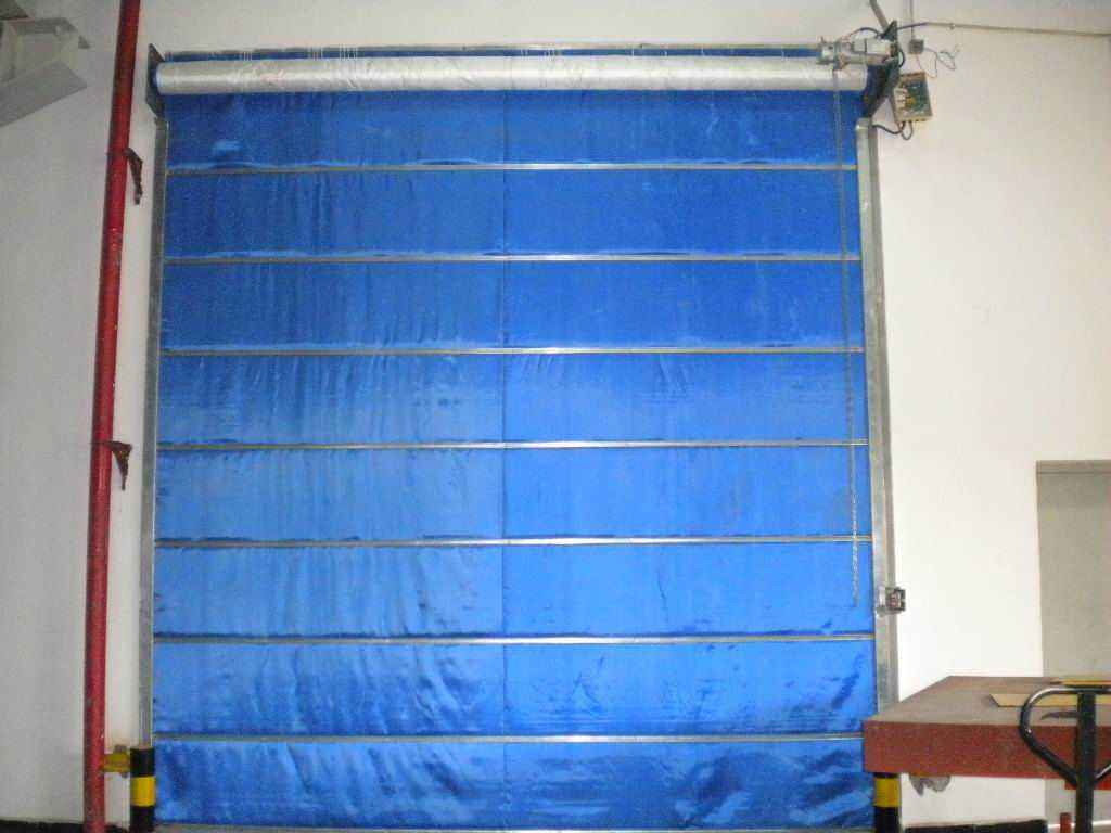 簾板為1.5刪厚的冷軋帶鋼軋制成“C”型板重疊聯鎖,具有剛度好,密封性能優的特點。亦可采用鋼質“r型串聯式組合結構。另配溫感、煙感、光感報警系統,水幕噴淋系統,遇有火情自動報警,自動噴淋,門體自控下降,定點延時關閉,使受災區域人員得以疏散。全系統防火綜合性能顯著。