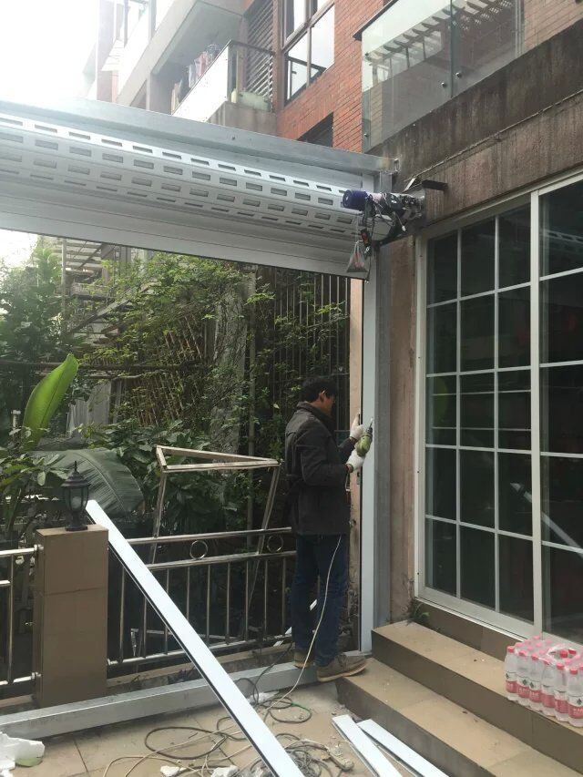 [摘要]:重慶晶宇金屬門窗廠為客戶卷簾門門框架進行墻體固定。